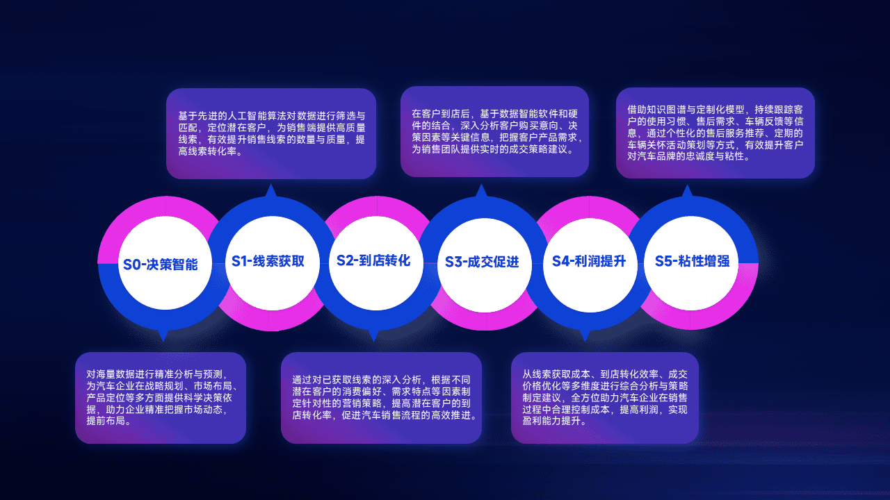 通过拓宽潜在客户来源、、、、优化线索分配并提高到店转化率,,,以增强销售效率。。。。同时,,,利用线索数据不断优化分析模型,,,有效提升转化率,,扩大营销影响力。。。